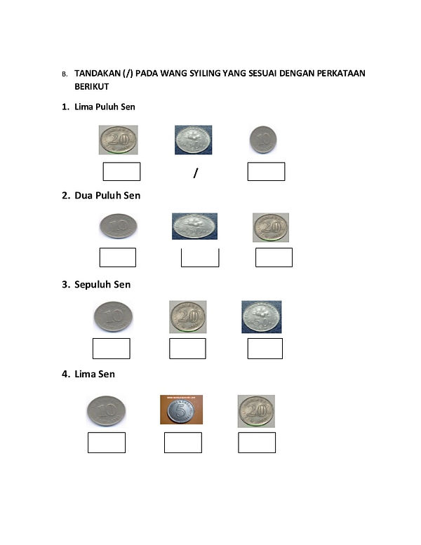 Dua Puluh Sen 3. Halaman 1 Halaman 2 Halaman 3 Halaman 4 Halaman 5 Indeks utama lembaran kerja Kembalikehalamanindeksutama. Jangan lupa menggunakan gambar duit syiling dan wang kertas dalam.